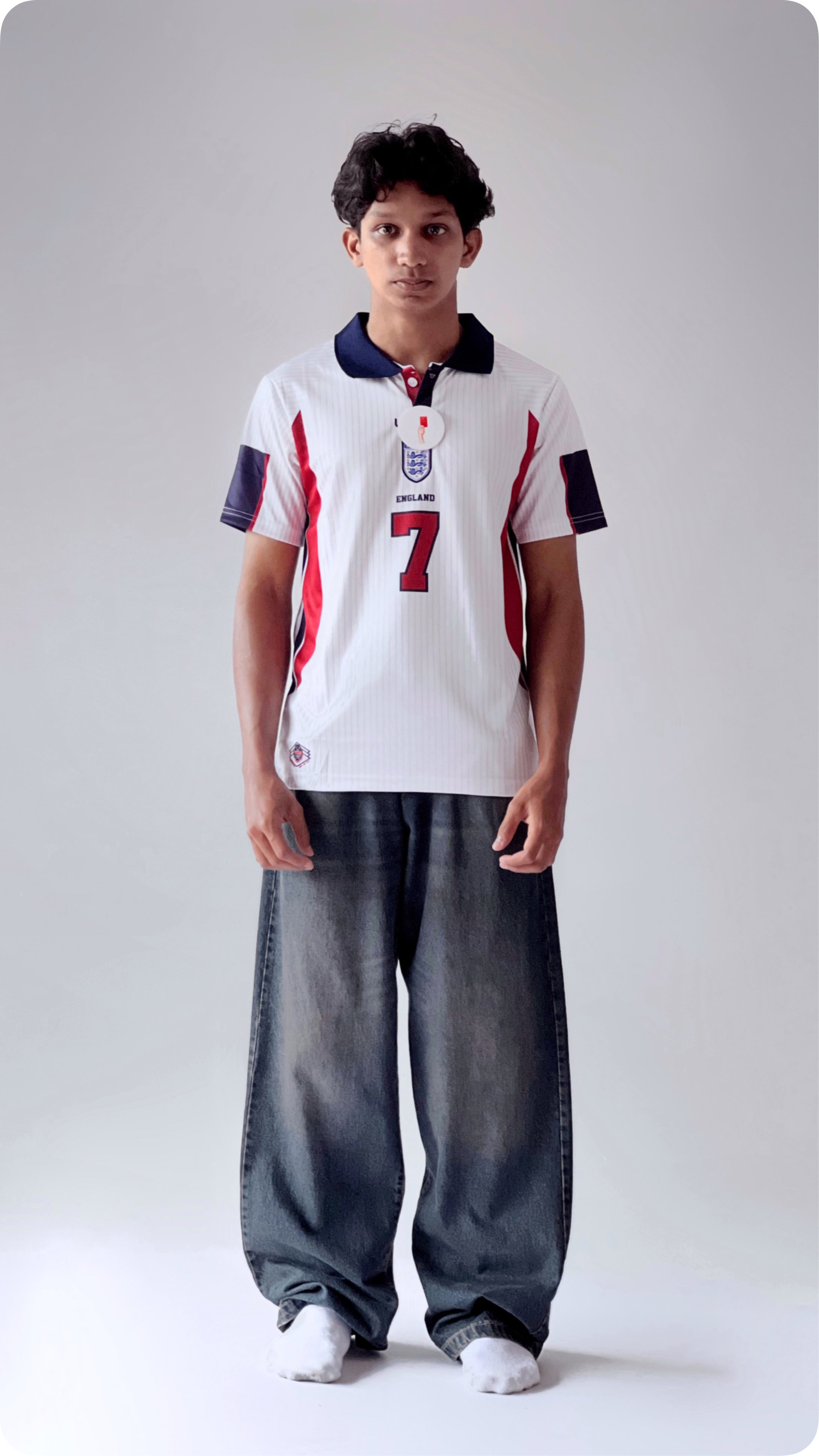 Pair your jersey with lightwashed jeans and white sneakers. It’s simple, timeless, and puts all the focus on the badge you wear. Add a snapback cap or sunglasses for a clean finish.